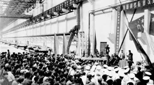 1959年8月22日,凝結(jié)著干部職工心血和汗水的32輛59式坦克,比建廠時(shí)計(jì)劃進(jìn)度提前一年交付部隊(duì),經(jīng)過嚴(yán)格考核試驗(yàn)后參加了建國十周年國慶大閱兵。
