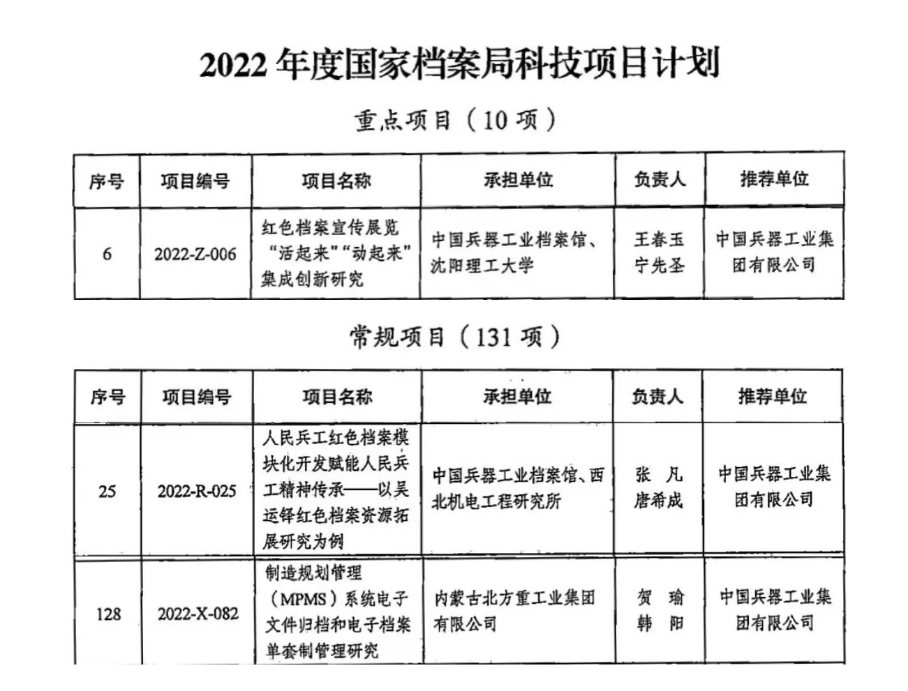 為深入貫徹落實《“十四五”全國檔案事業(yè)發(fā)展規(guī)劃》要求,著力提升檔案科研自主創(chuàng)新能力,根據《國家檔案局辦公室關于開展2022年度國家檔案局科技項目立項工作的通知》要求,中國兵器工業(yè)集團檔案館(以下簡稱檔案館)依據《2022年科技項目立項選題指南》,組織各單位申報成功三個檔案科技項目在國家檔案局立項,其中一個項目為國家級10項重點項目之一,排名第六,這是繼2021年在國家檔案局首次立項三個項目后的又一重大突破,標志著兵器工業(yè)檔案科研工作邁上新臺階。