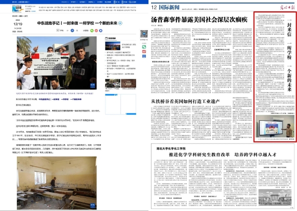 新華社、《光明日報》報道北方公司振華石油海外項目踐行社會責(zé)任:一封來信 一所學(xué)校 一個新的未來 |