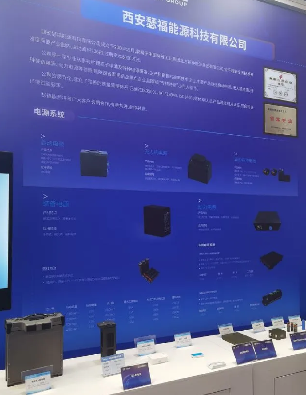 特能集團西安瑟福能源科技有限公司展示的高倍率電池、高比能電池、寬溫域電池和高安全電池等行業(yè)先進技術及產(chǎn)品。