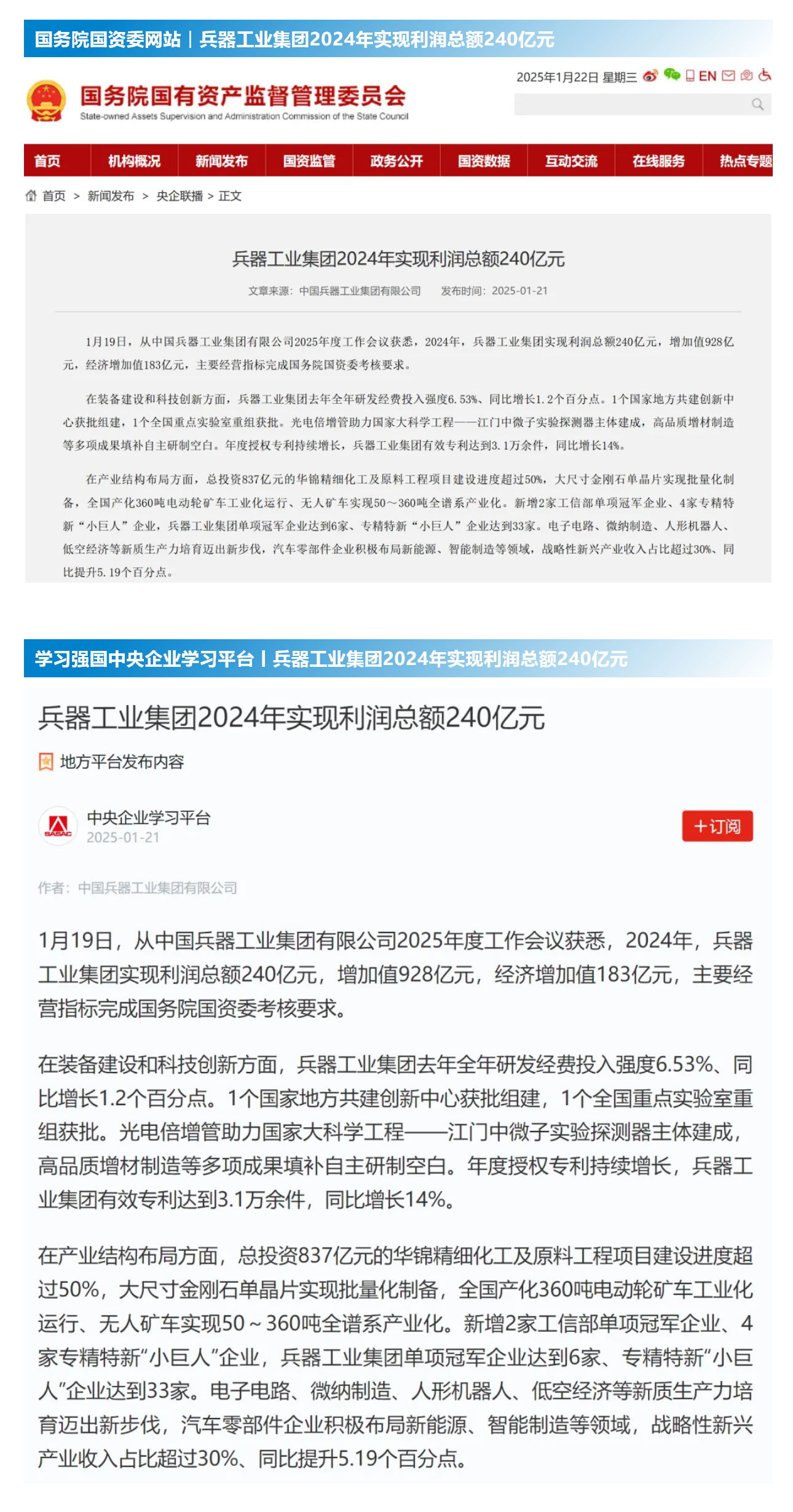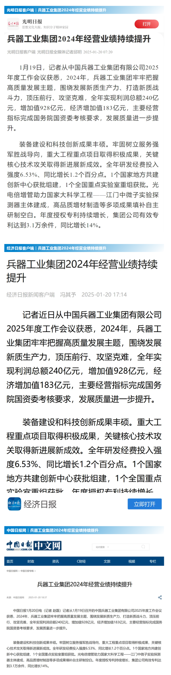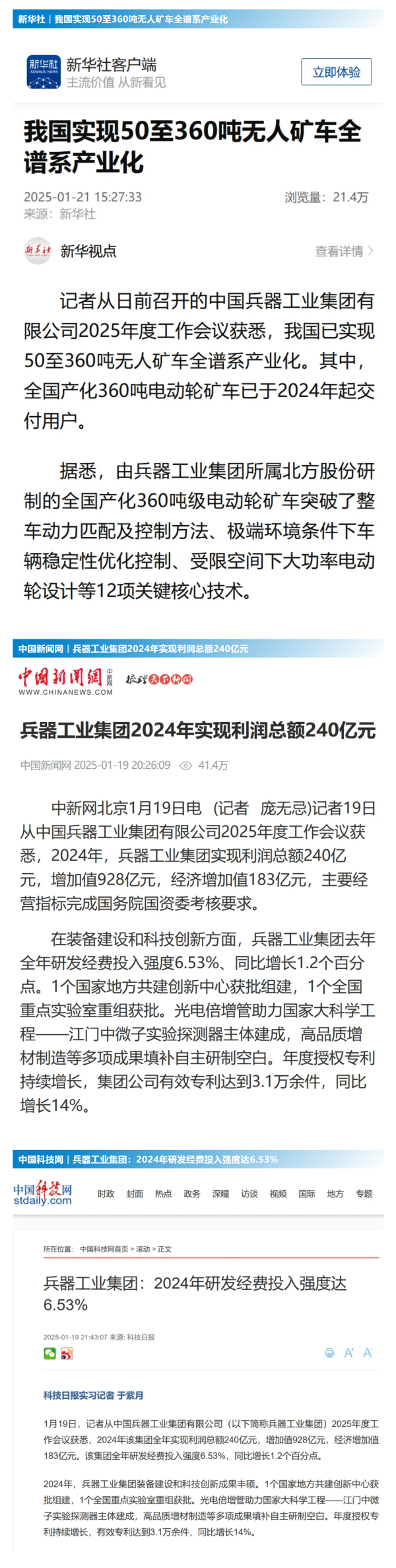 1月19日至20日,中國(guó)兵器工業(yè)集團(tuán)有限公司2025年度工作會(huì)議在京召開(kāi),會(huì)議總結(jié)2024年工作,分析形勢(shì)任務(wù),明確工作思路,部署2025年工作。 集團(tuán)公司2024年取得的成績(jī)及下一步重點(diǎn)工作受到社會(huì)媒體廣泛關(guān)注。新華社、中國(guó)新聞網(wǎng)、中國(guó)科技網(wǎng)、光明日?qǐng)?bào)客戶端、經(jīng)濟(jì)日?qǐng)?bào)客戶端、中國(guó)日?qǐng)?bào)網(wǎng)、國(guó)務(wù)院國(guó)資委網(wǎng)站、學(xué)習(xí)強(qiáng)國(guó)中央企業(yè)學(xué)習(xí)平臺(tái)、新浪網(wǎng)、網(wǎng)易網(wǎng)、搜狐網(wǎng)、騰訊網(wǎng)、鳳凰網(wǎng)等中央主流媒體、國(guó)家部委網(wǎng)站及知名網(wǎng)絡(luò)媒體對(duì)集團(tuán)公司2025年度工作會(huì)議進(jìn)行了報(bào)道,重點(diǎn)關(guān)注集團(tuán)公司經(jīng)營(yíng)業(yè)績(jī)、科技創(chuàng)新、產(chǎn)業(yè)結(jié)構(gòu)布局優(yōu)化等情況。其中,新華社以《我國(guó)實(shí)現(xiàn)50至360噸無(wú)人礦車全譜系產(chǎn)業(yè)化》為題,重點(diǎn)報(bào)道了集團(tuán)公司在推動(dòng)智能制造水平提升方面取得的成效;中國(guó)新聞網(wǎng)、光明日?qǐng)?bào)客戶端、經(jīng)濟(jì)日?qǐng)?bào)客戶端、中國(guó)日?qǐng)?bào)網(wǎng)等就集團(tuán)公司2024年度經(jīng)營(yíng)業(yè)績(jī)及各項(xiàng)工作取得的成果進(jìn)行報(bào)道;中國(guó)科技網(wǎng)著重報(bào)道了集團(tuán)公司在科技創(chuàng)新和優(yōu)化產(chǎn)業(yè)結(jié)構(gòu)布局方面的最新進(jìn)展。集團(tuán)公司門戶網(wǎng)站、微信公眾號(hào)、微博等新媒體平臺(tái)以及《中國(guó)兵工報(bào)》也對(duì)集團(tuán)公司工作會(huì)議進(jìn)行了及時(shí)報(bào)道,各成員單位紛紛對(duì)相關(guān)內(nèi)容進(jìn)行轉(zhuǎn)載,引發(fā)全系統(tǒng)關(guān)注。 集團(tuán)公司職工及廣大網(wǎng)友熱議工作會(huì) “2025年工作會(huì)為我們指明了發(fā)展方向、明確了奮斗目標(biāo),面對(duì)全新的機(jī)遇和挑戰(zhàn),作為兵工人深感責(zé)任重大。” “科技是第一生產(chǎn)力,一定要以科技創(chuàng)新引領(lǐng)新質(zhì)生產(chǎn)力發(fā)展,為高質(zhì)量發(fā)展提供支撐?!?/p> “把各項(xiàng)工作做深、做實(shí)、做細(xì),努力為集團(tuán)公司高質(zhì)量發(fā)展添磚加瓦?!?/p> “2024年中國(guó)兵器展示了大國(guó)重器,祝新的一年中再創(chuàng)輝煌!” |
